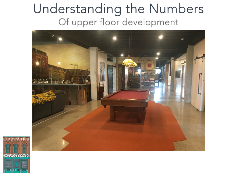 Dan Carmody gets into the numbers. How to assemble simple financial statements to help improve business decisions whether you are a small building owner needing to understand the profitability of upper floor development or a Main Street manager or city official trying to understand how to deliver financial incentives that may be needed to jumpstart upper floor development in your town.